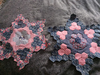 As you can see I've returned to using hexies, I just love working with this shape. I will post more as the project progresses.